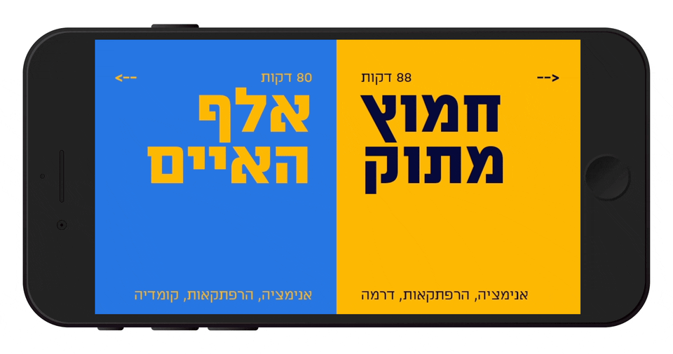"This or That" (זה מה יש) is a streaming app designed to cut down the massive time wasted deciding what to watch on streaming platforms. The app asks a series of simple questions and, based on your answers, provides personalized movie and TV show recommendations. This project was developed as part of the "Tomorrow’s TV" course, led by Asaf Cohen at Bezalel Academy of Arts and Design, Jerusalem.
